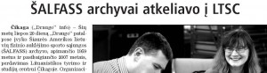 ŠALFASS archyvai lieka ten, kur buvo sukurti